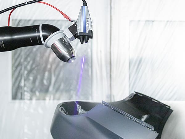 SpraySpy® an einem Sames Hochrotationszerstäuber – Beispiel für eine Echtzeit Spray-Überwachung des Produktionsprozesses: