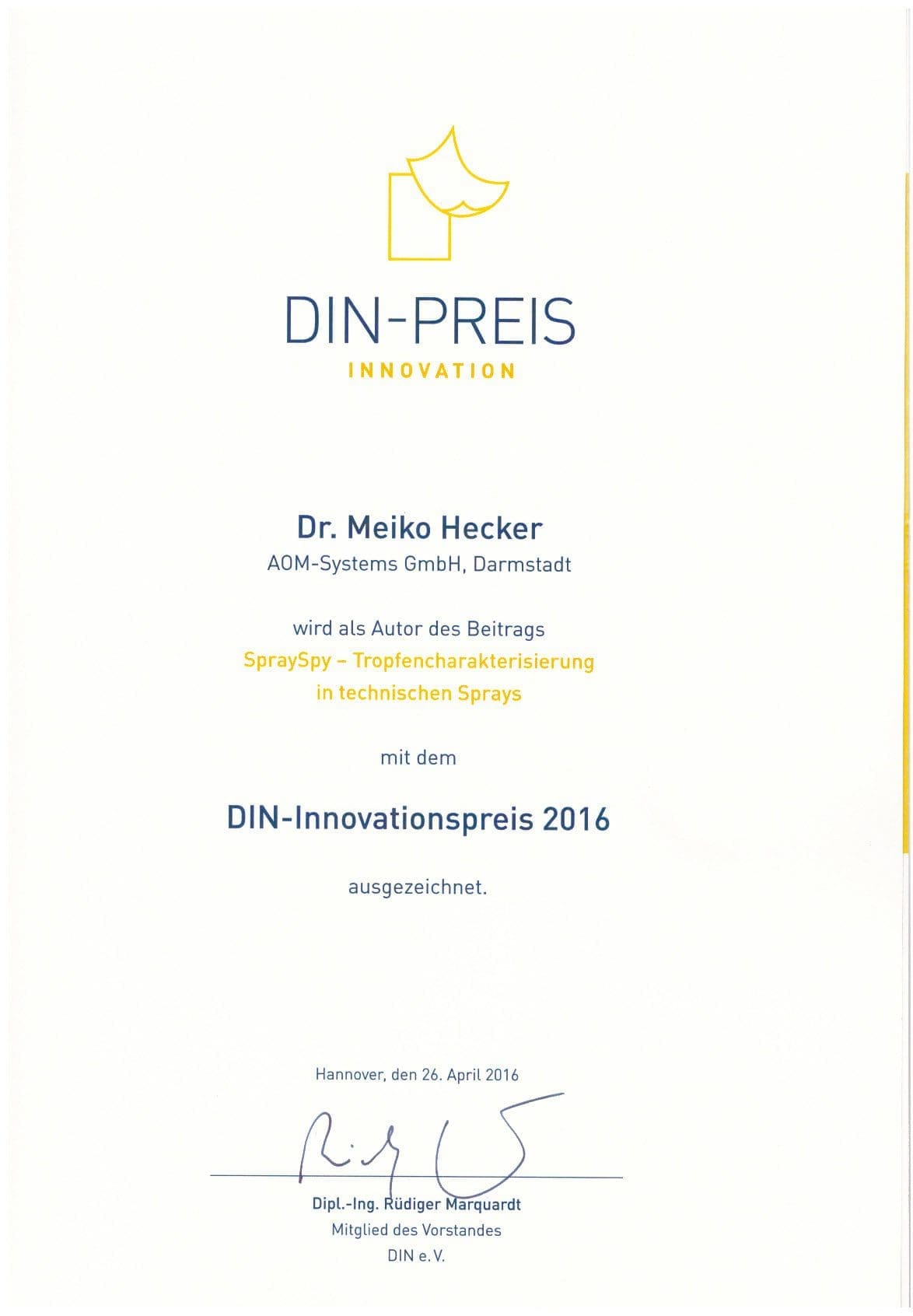 Parallel to the Hannover Messe AOM-Systems was awarded with the Deutschen Industriepreises as 3rd winner in the kategory supplier.